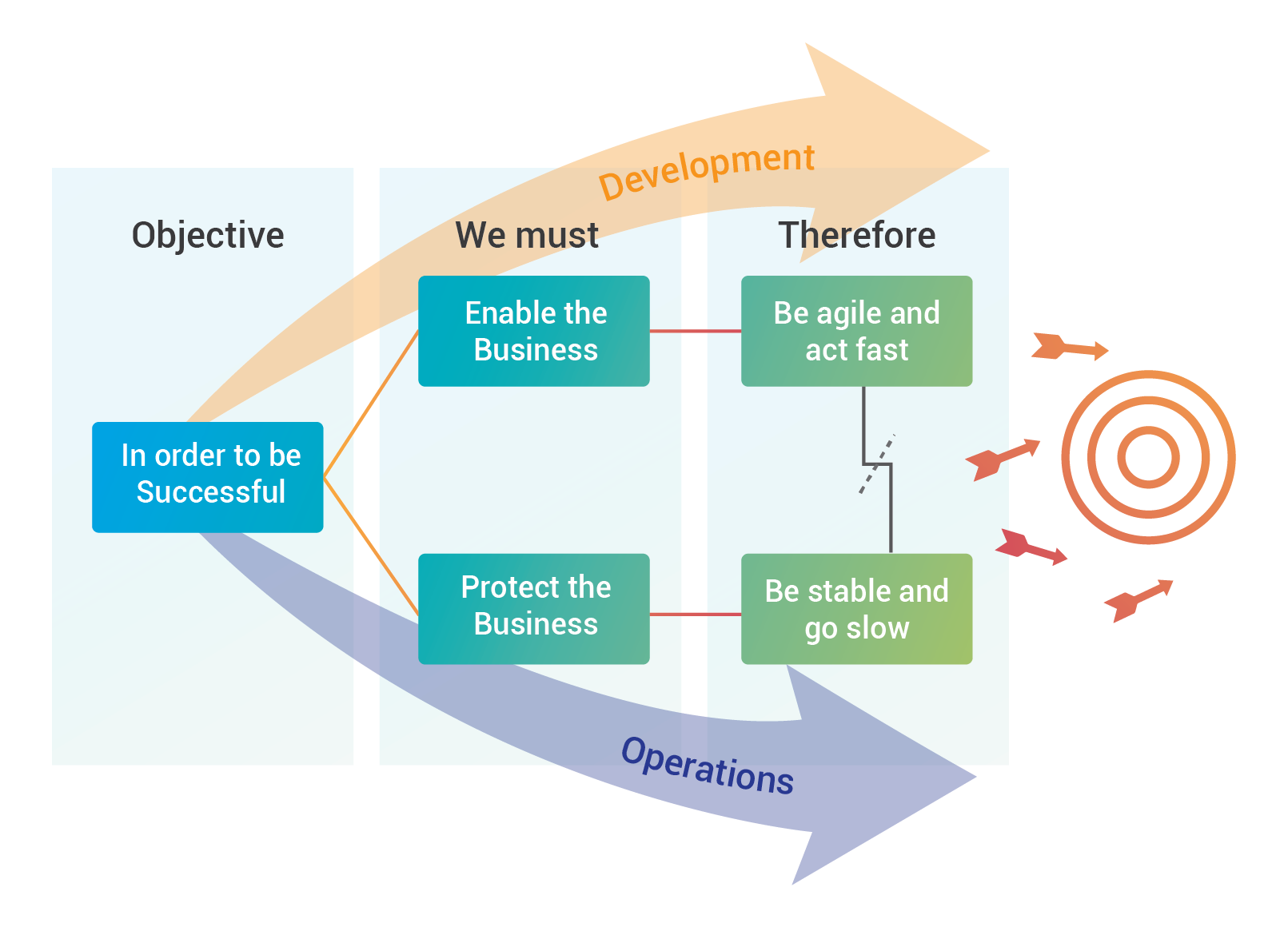 In a typical organization Dev and Ops work towards different goals. Focus of development is on agility, and always aspires to build new features and go-to-market with new functionality, at the fastest pace possible.