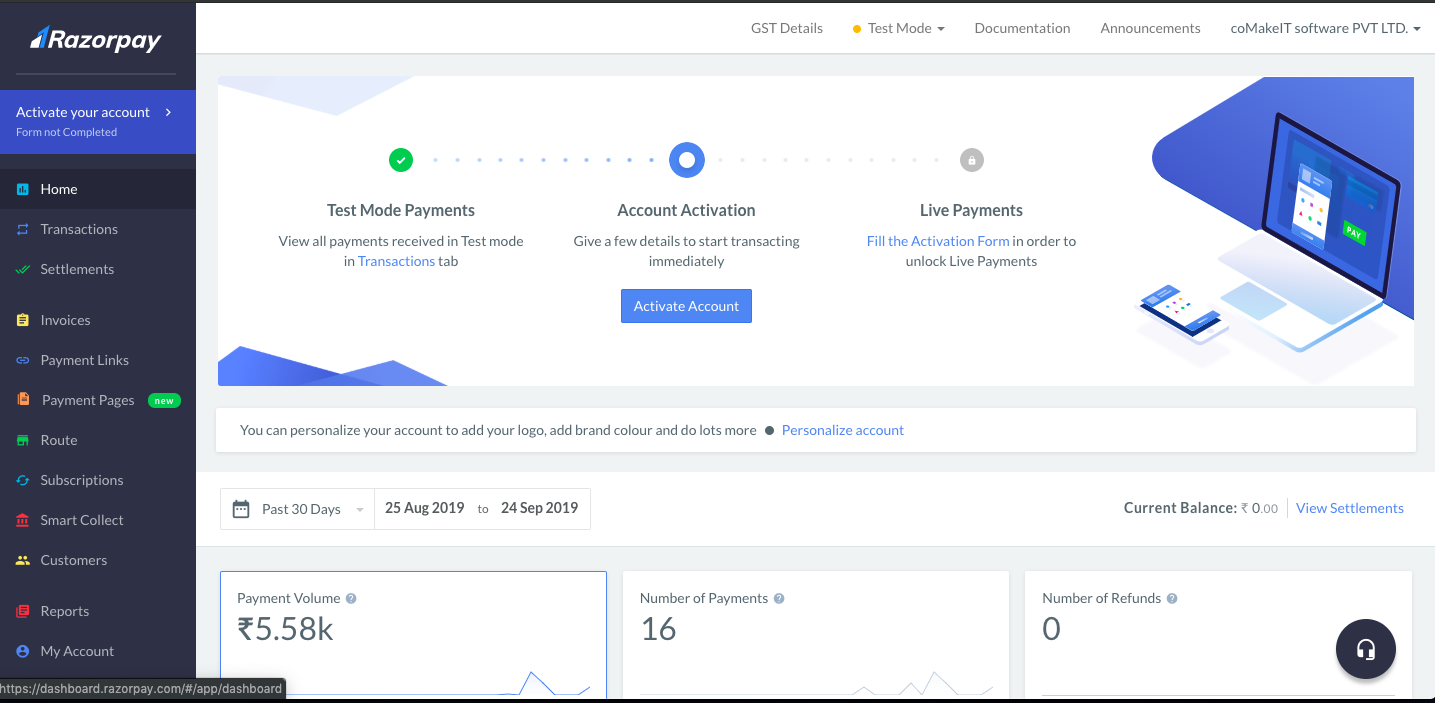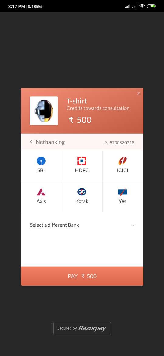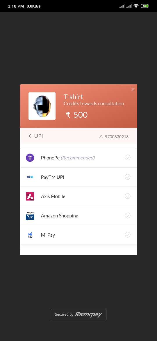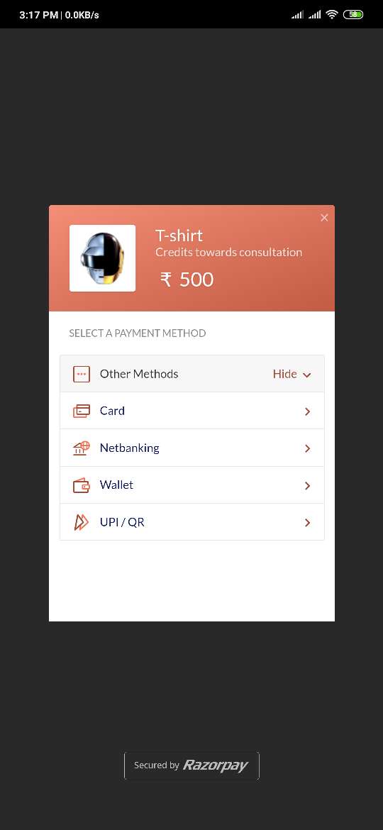 We have chosen Razorpay integration for this demo, as it is well documented for integration and customization. It offers clear and intutive visual designs for checkouts which makes integration easy during development, and supports wide range of payment options like credit and debit cards, bank transfers, e-Wallets, UPI, EMI.